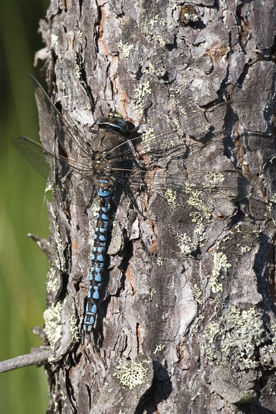 Pohjanukonkorentokoiraan kylkijuovat ovat erittäin kapeat ja takaruumis laajalti sininen. Hamina 6/07, Petri Parkko.